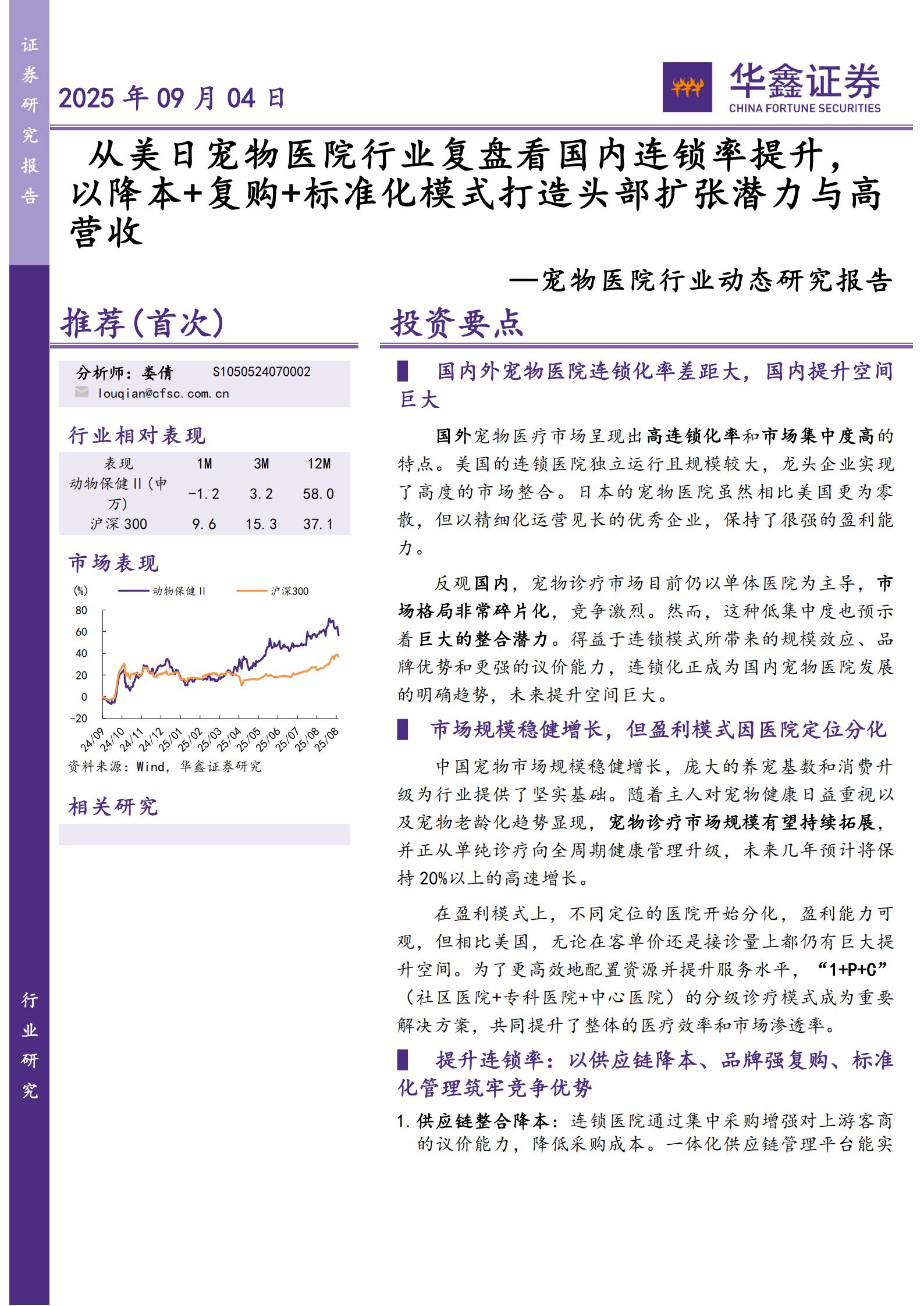 反观国内,宠物诊疗市场目前仍以单体医院为主导,市场格局非常碎片化,竞争激烈。然而,这种低集中度也预示着巨大的整合潜力。得益于连锁模式所带来的规模效应、品牌优势和更强的议价能力,连锁化正成为国内宠物医院发展的明确趋势,未来提升空间巨大。