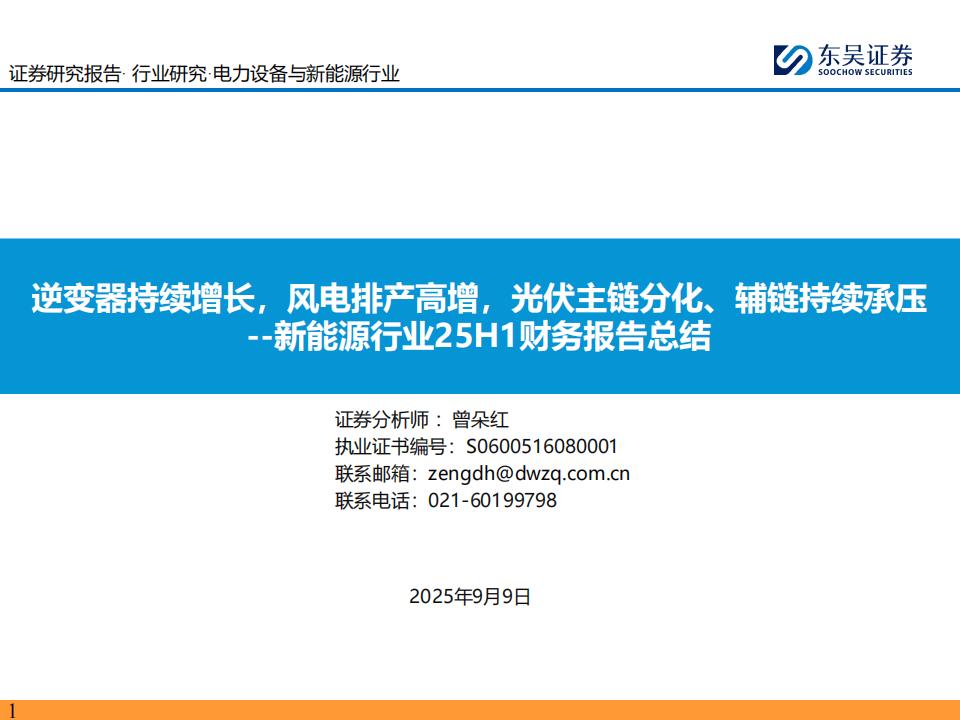 户储需求逐步恢复,工商储及大储高增,辅材盈利短期承压,Q3涨价有望改善。户储方面欧洲库存去化完毕户储需求逐步恢复,东南亚需求持续旺盛,澳洲受补贴驱动需求快速爆发;国内部分省份推出过渡性激励政策对冲强制配储取消影响叠加独立储能占比提升,国内大储需求持续高增;美国大储25年抢装,26年增速或有放缓;欧洲、中东、澳大利亚等市场大储需求有望持续翻倍增长;欧洲受补贴政策支持+动态电价丰富收益模式,工商储需求爆发,25年有望翻倍增长,受益于户储需求恢复叠加工商储及大储需求高增,逆变器整体业绩表现优异;辅材层面25Q2依旧承压,9月玻璃、胶膜等均有所涨价,25Q3盈利有望改善。