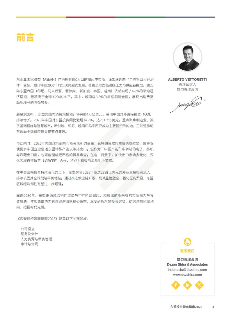 面向2030年,东盟正通过结构性改革与中产阶层崛起,释放出前所未有的市场潜力与投资机遇。本报告由协力管理咨询团队精心编撰,深度剖析东盟投资逻辑,助您洞察区域动向、把握时代先机。东盟各国正加快推进监管改革,全面提升区域对外资的吸引力。虽然各国改革的重点和节奏不尽相同,但总体方向一致,均围绕优化营商环境、简化审批流程、强化外资保障等方面展开。其中,印尼启动了独立以来最为雄心勃勃的官僚体系改革,展现出打造区域增长引擎的强烈意愿。