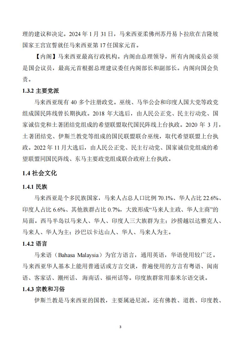 据马来西亚国家统计局数据统计,截至2024年3月底,马总人口约3400万人,人口增长率2.3%。其中,居民3060万人,非居民340万人;男性1780万人,女性1610万人,性别比为111:100;0-14岁人口约770万,15-64岁人口2380万,65岁以上人口250万;人口集中分布的城市主要有吉隆坡、新山、怡保、莎亚南、八打灵再、古晋、乔治市、哥打巴鲁、哥打基纳巴鲁、瓜拉登嘉楼等。在马华人约768万人,占总人口的22.6%,主要集中在槟城、吉隆坡、乔治市、怡保、新山、古晋、亚庇和马六甲等。马来人、印度人分别占总人口的70.1%和6.6%。