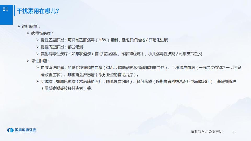 其他病毒性疾病:如带状疱疹(辅助缩短病程、缓解神经痛)、小儿病毒性肺炎/毛细支气管炎恶性肿瘤: