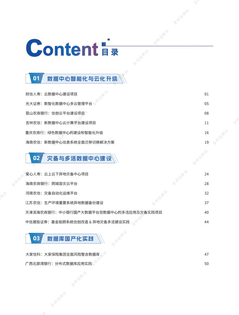 《2025金融业新一代数据中心创新发展案例集》系统梳理了近年来金融业在数据中心领域的创新实践与典型成果,涵盖“数据中心智能化与云化升级、灾备与多活数据中心建设、数据库国产化实践、数据库迁移与运维管理、智能运维与AI应用、云网融合与智能网络创新”六大领域,汇集了银行、保险、证券、基金等各类金融机构的真实项目案例。这些案例不仅展现了智能算力、云平台、新型网络等关键技术在业务场景中的落地价值,更体现出金融机构在数据中心架构转型、智能运维体系建设、大模型集成应用、安全管理以及成本优化等方面的前瞻布局与系统思考。