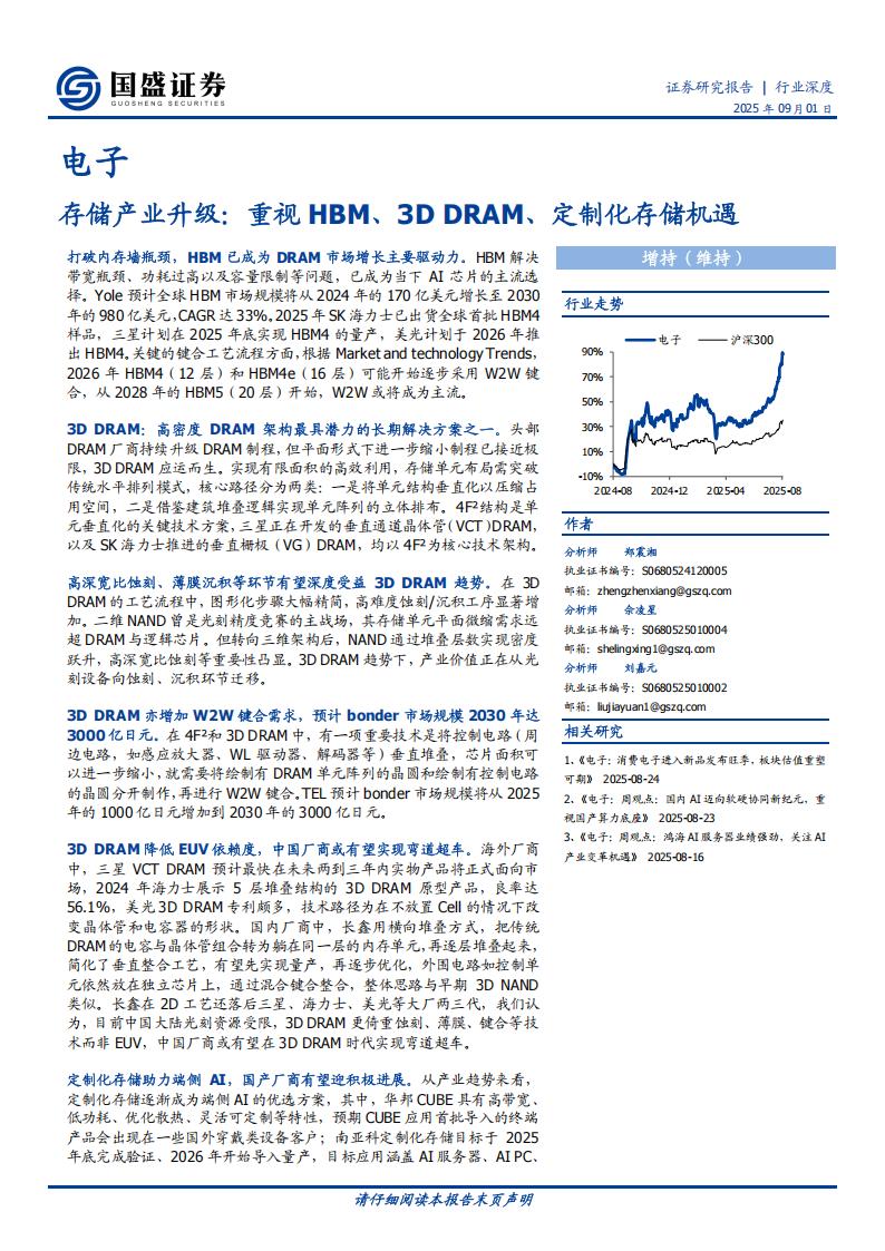 定制化存储助力端侧AI,国产厂商有望迎积极进展。从产业趋势来看,定制化存储逐渐成为端侧AI的优选方案,其中,华邦CUBE具有高带宽、低功耗、优化散热、灵活可定制等特性,预期CUBE应用首批导入的终端产品会出现在一些国外穿戴类设备客户;南亚科定制化存储目标于2025年底完成验证、2026年开始导入量产,目标应用涵盖AI服务器、AIPC、AI手机、AI机器人与AI汽车;兆易创新控股子公司青耘科技紧贴客户需求,从容量、带宽、能耗等方面为客户提供更为定制化的解决方案,重塑端侧存储新形态。公司定制化存储在AI手机、AI PC、汽车、机器人等若干领域的客户拓展进展顺利。
