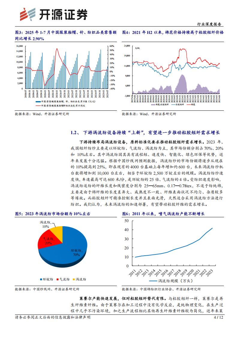 1.2、下游涡流纺设备持续“上新”,有望进一步推动粘胶短纤需求增长