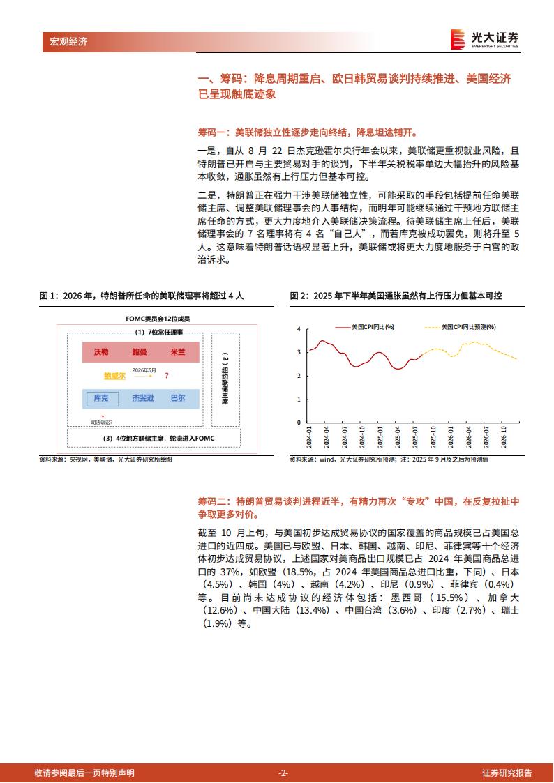 一、筹码:降息周期重启、欧日韩贸易谈判持续推进、美国经济已呈现触底迹象