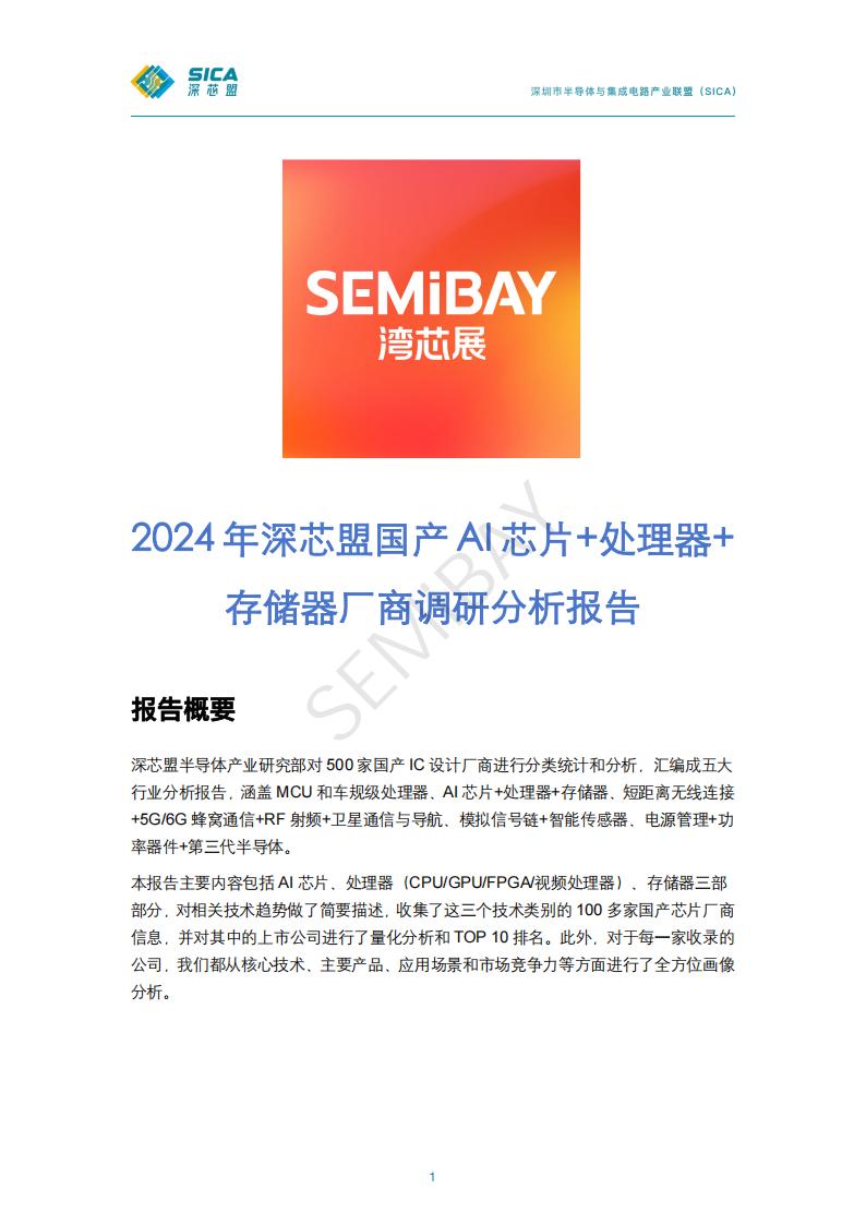 本报告主要内容包括AI芯片、处理器(CPU/GPU/FPGA视频处理器)、存储器三部部分,对相关技术趋势做了简要描述,收集了这三个技术类别的100多家国产芯片厂商信息,并对其中的上市公司进行了量化分析和TOP 10排名。此外,对于每一家收录的公司,我们都从核心技术、主要产品、应用场景和市场竞争力等方面进行了全方位画像分析。