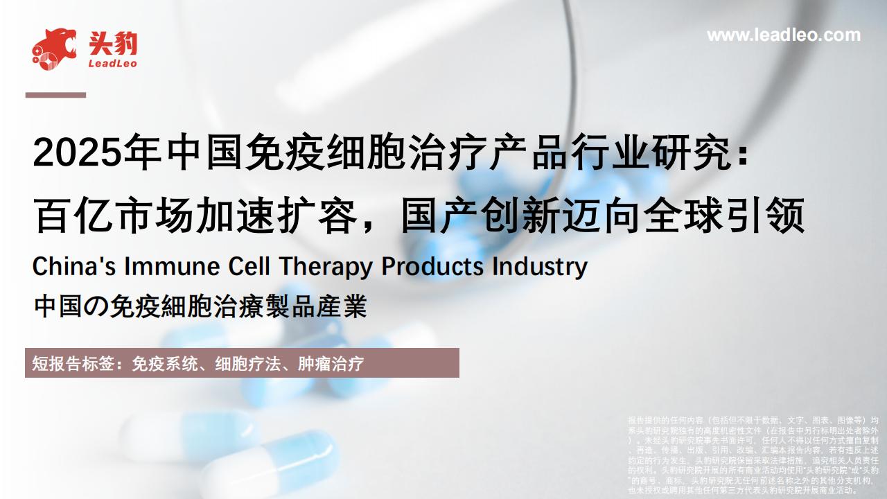 2025年中国免疫细胞治疗产品行业研究:百亿市场加速扩容,国产创新迈向全球引领.pdf下载
