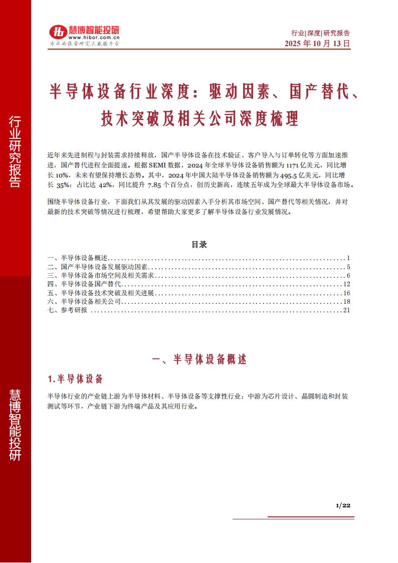 围绕半导体设备行业,下面我们从其发展的驱动因素入手分析其市场空间、国产替代等相关情况,并对最新的技术突破等情况进行梳理,希望帮助大家更多了解半导体设备行业发展情况。