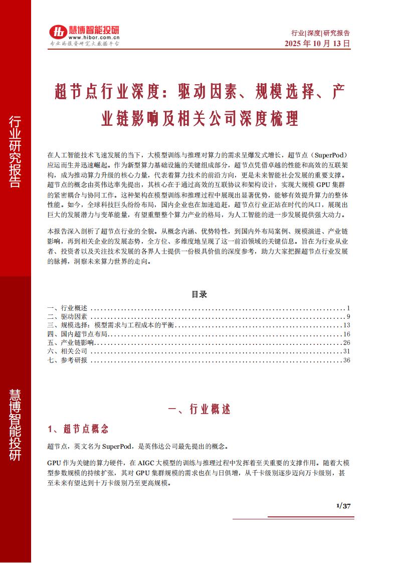 本报告深入剖析了超节点行业的全貌。从概念内涵、优势特性,到国内外布局案例、规模演进、产业链影响,再到相关企业的发展态势,全方位、多维度地呈现了这一前沿领域的关键信息。旨在为行业从业者、投资者以及关注技术发展的各界人士提供一份极具价值的深度参考,助力大家把握超节点行业发展的脉搏,洞察未来算力世界的走向。