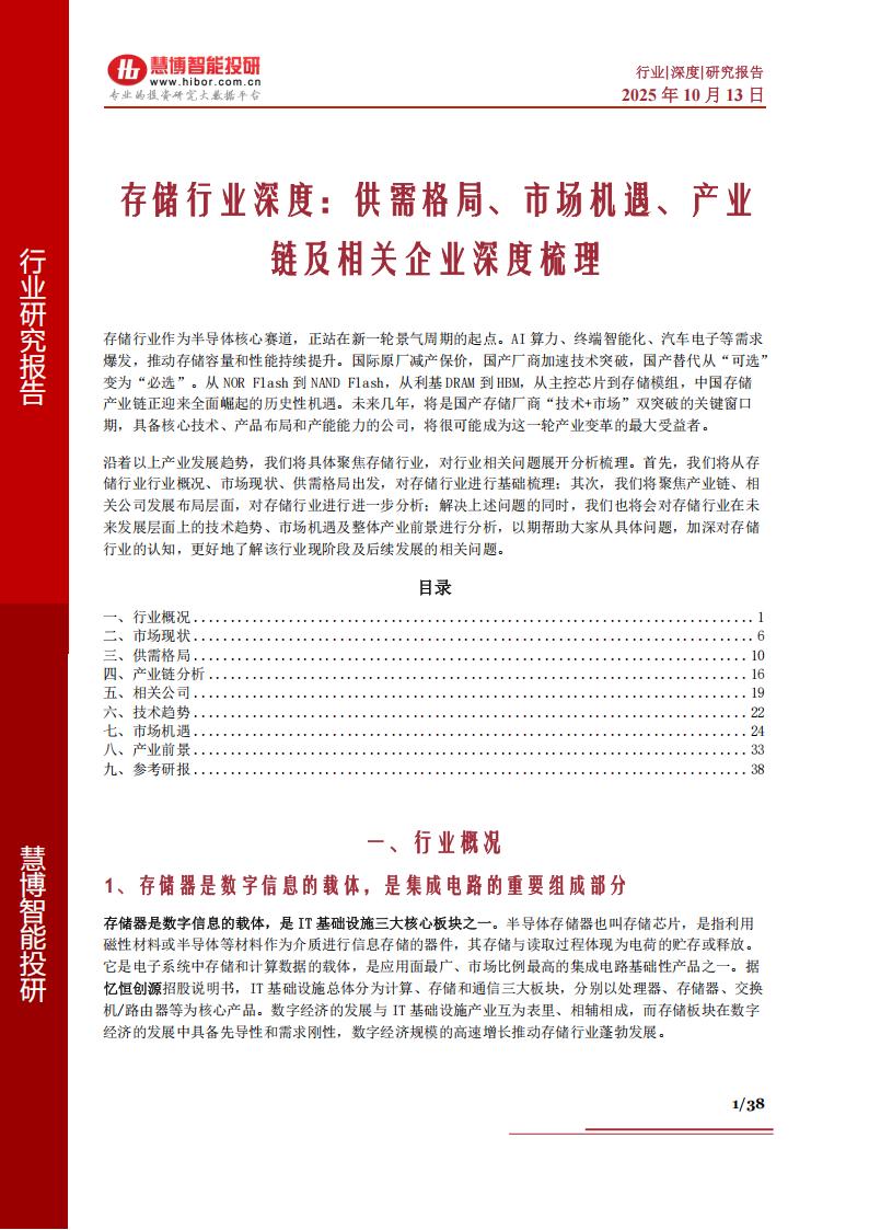 存储行业作为半导体核心赛道,正站在新一轮景气周期的起点。AI算力、终端智能化、汽车电子等需求爆发,推动存储容量和性能持续提升。国际原厂减产保价,国产厂商加速技术突破,国产替代从“可选”变为“必选”。从NOR Flash到NAND Flash,从利基DRAM到HBM,从主控芯片到存储模组,中国存储产业链正迎来全面崛起的历史性机遇。未来几年,将是国产存储厂商“技术+市场”双突破的关键窗口期,具备核心技术、产品布局和产能能力的公司,将很可能成为这一轮产业变革的最大受益者。