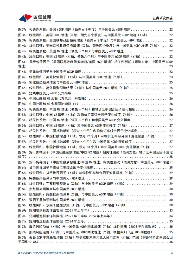 经理论推导,我们提出了另一套方案:中国rGDP、美元价值因子(美国M2/美国rGDP)、中国货币传导因子(社融/中国M2)。在这个体系中,美元价值因子和货币传导因子均采用领先短期增速的宏观指标。这意味着,我们稍做短期预测,或者不预测,就能推算400天后的短期增速水平。这套方案形成的预测值可以与短期增速实际值达到0.9的相关性和80%的拟合优度。